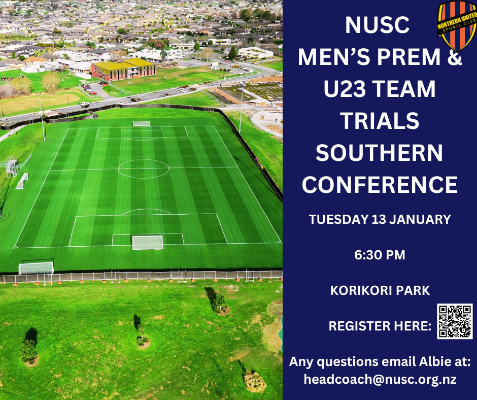 Northern United is strengthening their senior squad for the upcoming season, and are looking for driven, competitive players ready to step into a high‑performance first‑team environment. Register your interest to trial today HERE. Any questions, please email Albie (Head Coach) on headcoach@nusc.org.nz