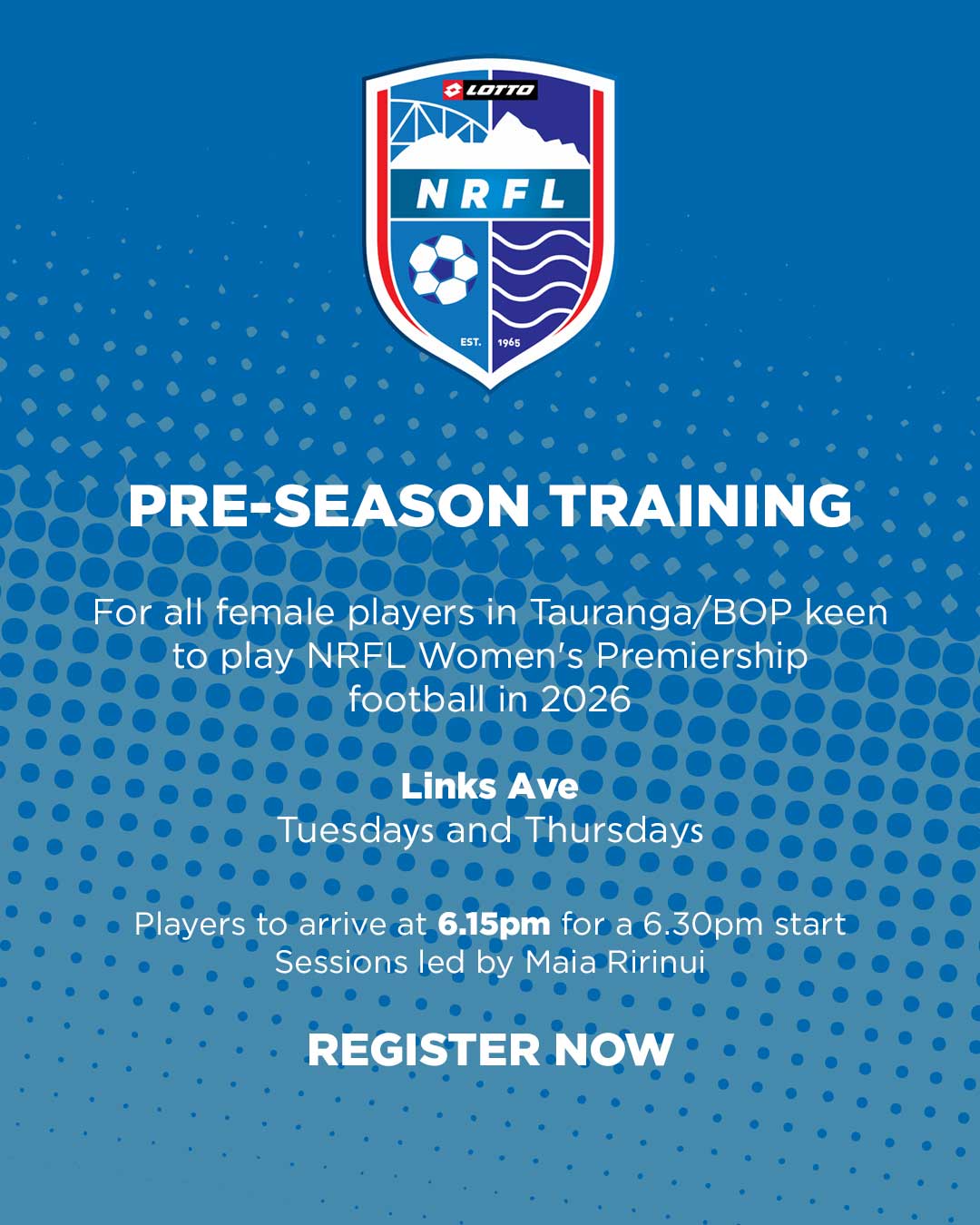 For all female players in Tauranga/BOP keen to play NRFL Women's Premiership football in 2026 -Pre-season Training Continues!