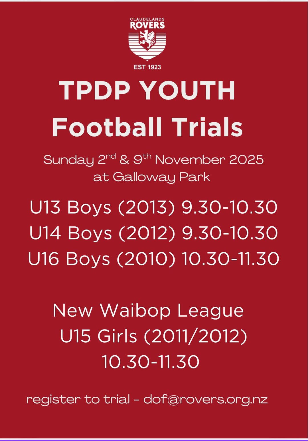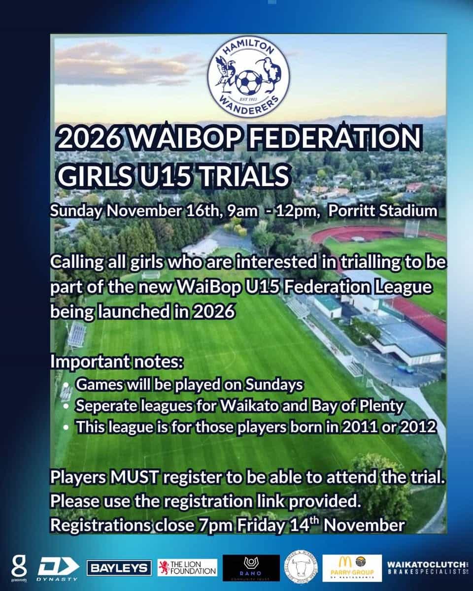 To reduce travel, we're planning to have two U15 Girls leagues, one in the Bay of Plenty and one in Waikato, and to run some crossover fixtures during the season (just like 2025's U14 Leagues).